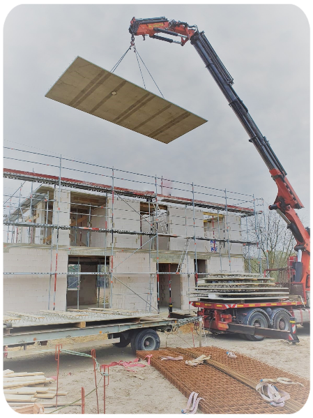 - wird mit einem Kran vor Ort verlegt.